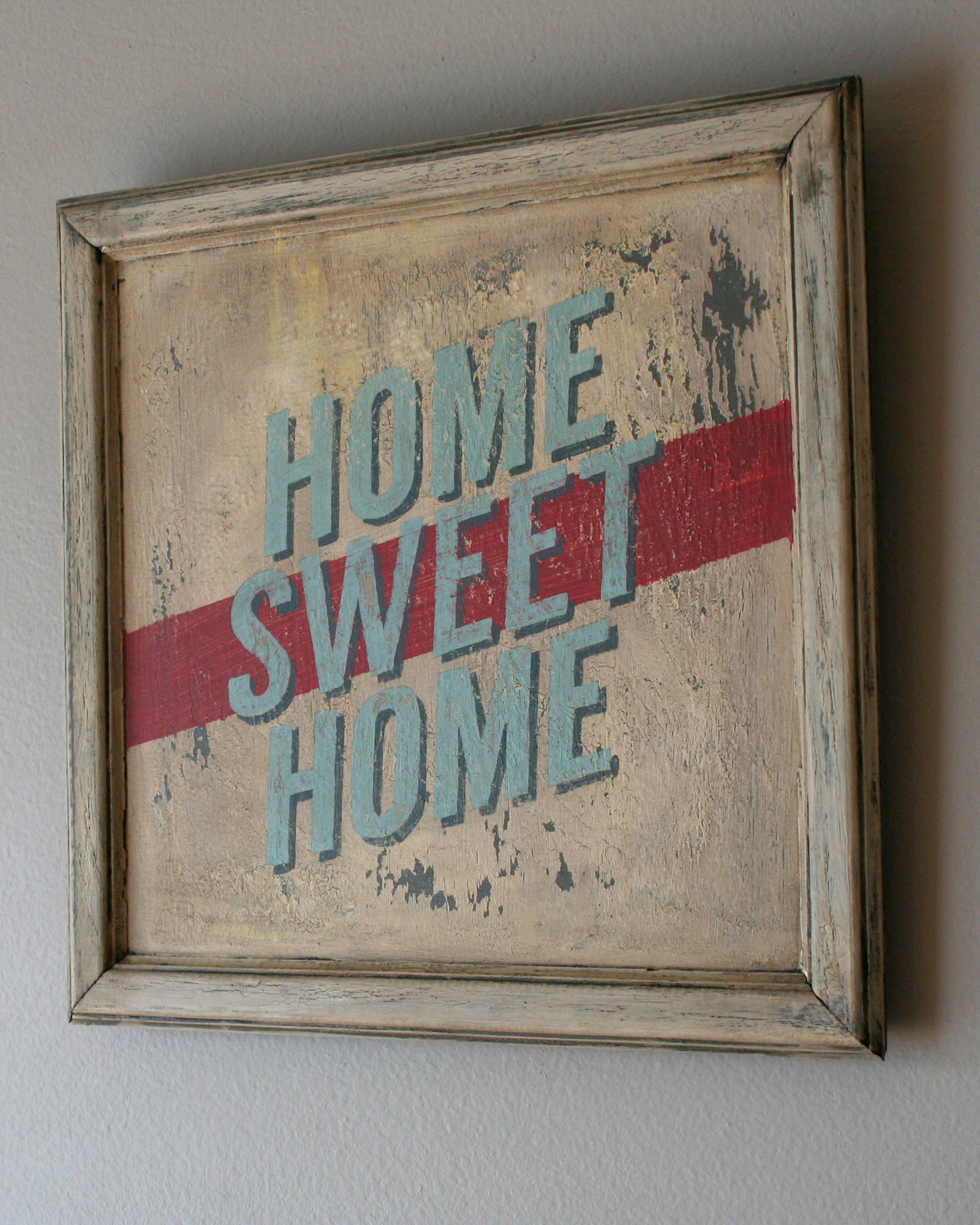It is completely hand-painted, using no vinyl or stencils. The sign is then aged with our three step antiquing process, and sealed with a semi-gloss poly finish.