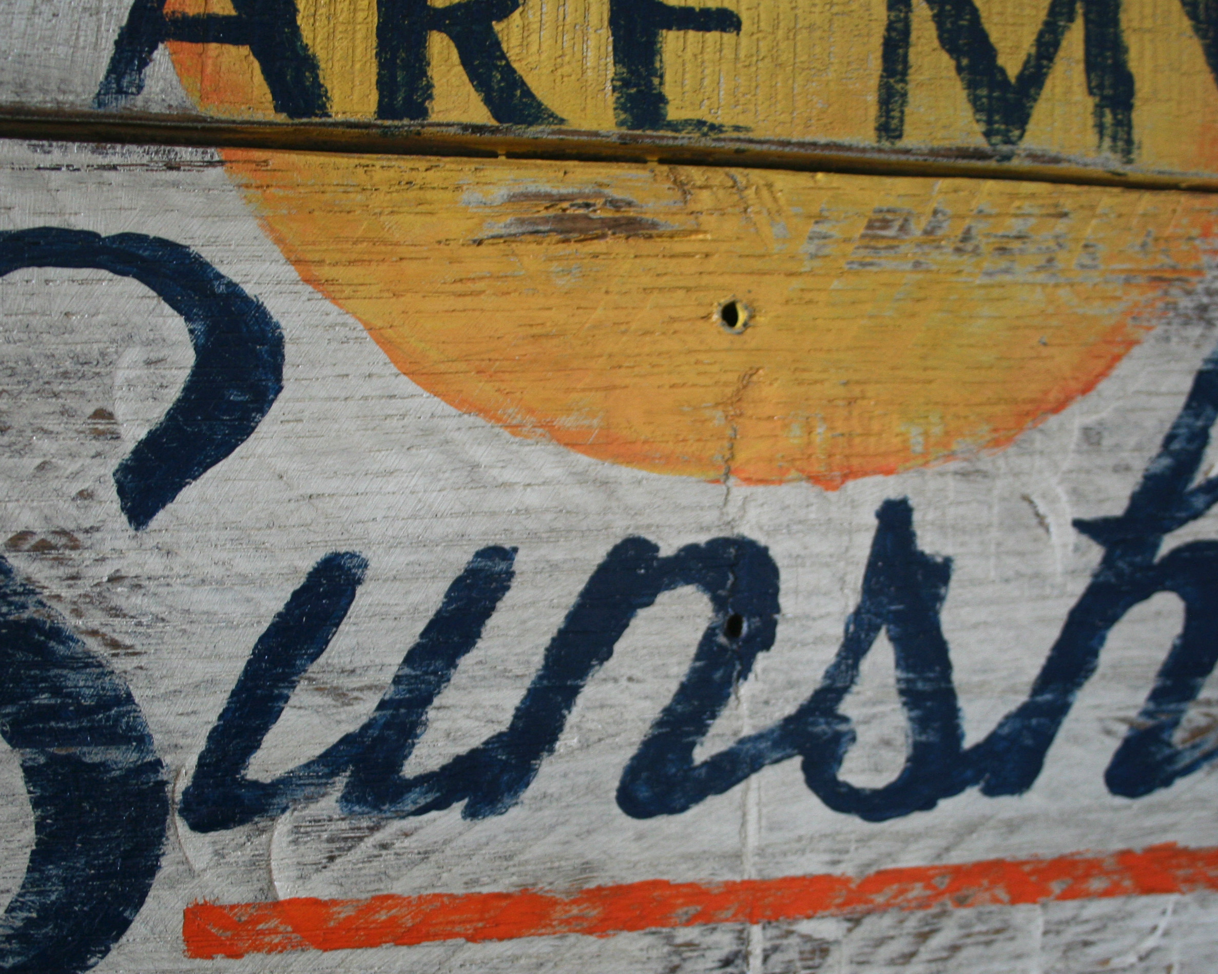 It is completely hand-painted, using no vinyl or stencils. The sign is then aged with our three step antiquing process, and sealed with a semi-gloss poly finish.