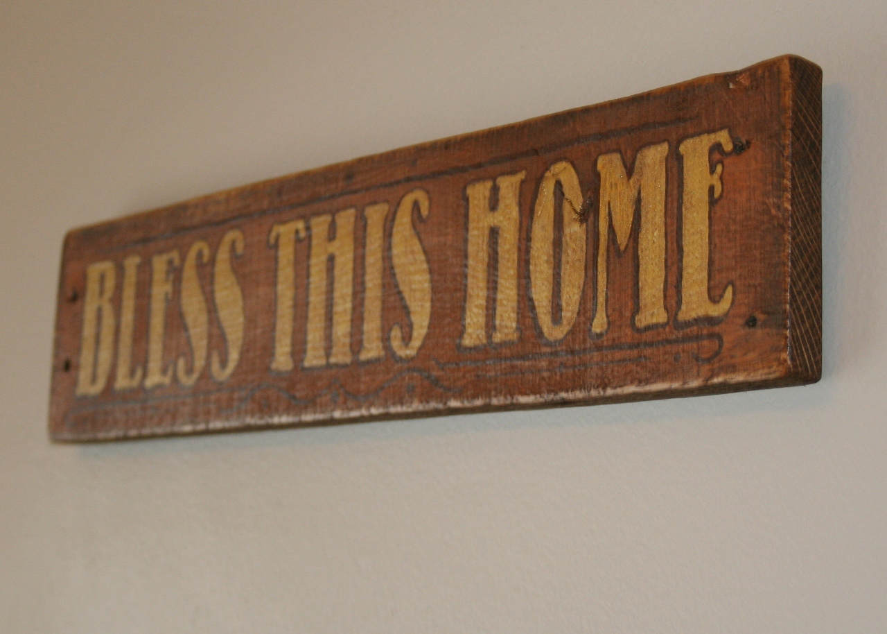 It is completely hand-painted, using no vinyl or stencils. The sign is then aged with our three step antiquing process, and sealed with a semi-gloss poly finish.