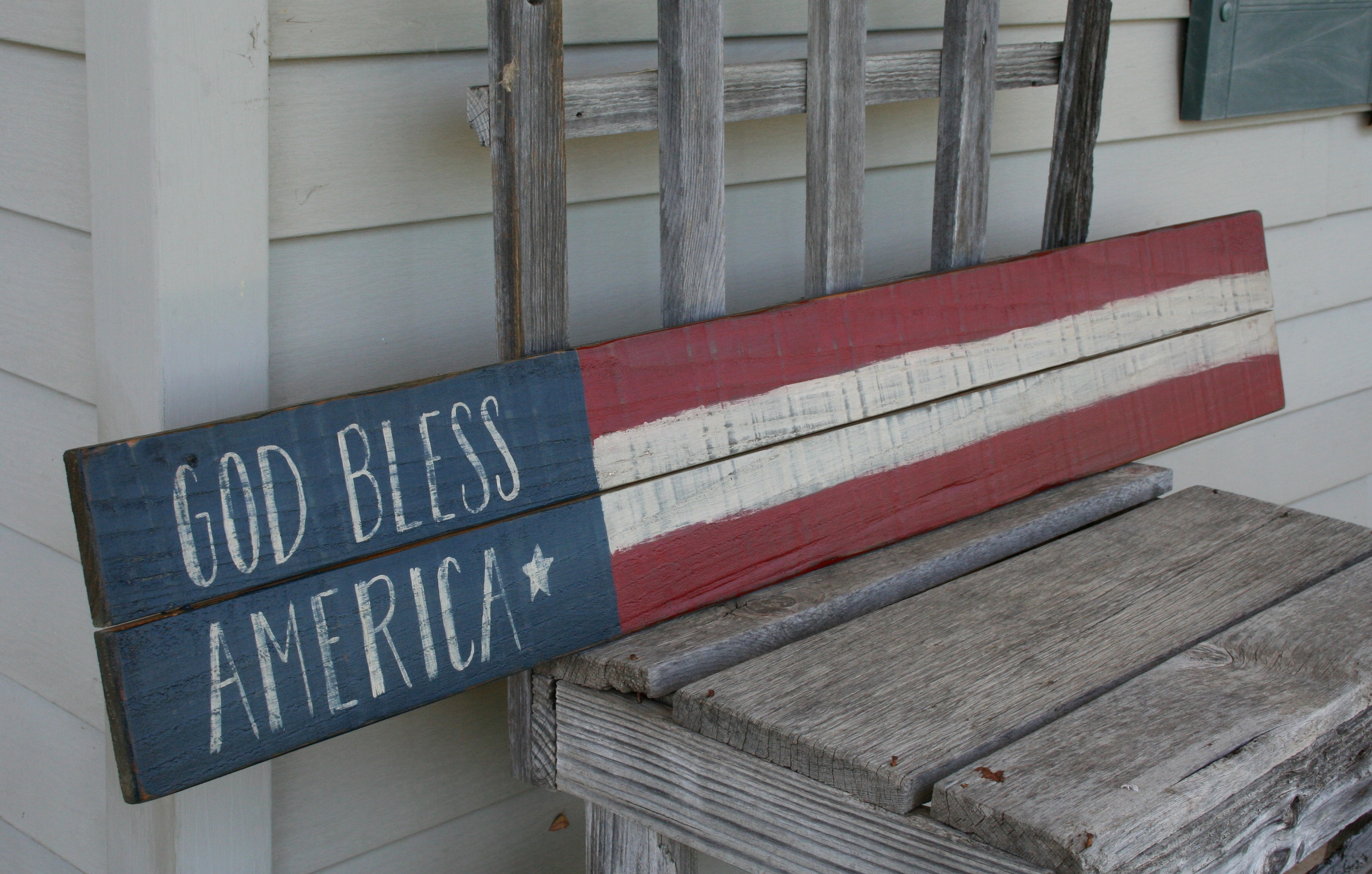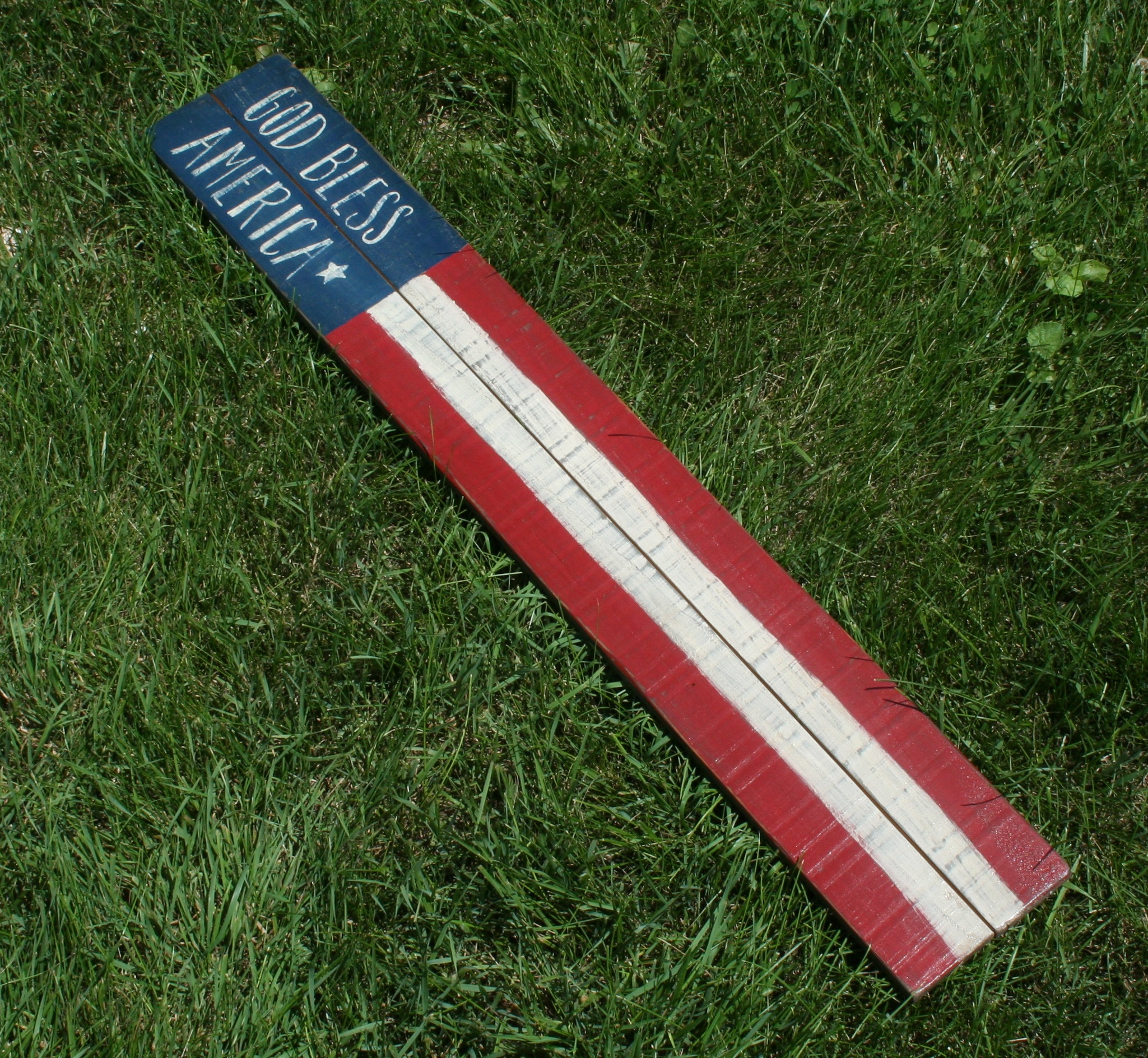 Show off your American spirit by proudly displaying this sign in your home. It measures 45" x 7", is made from reclaimed cedar fence boards, and comes ready for hanging.